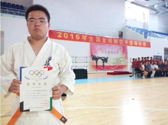 我院2015级微电子2班学生梁绍飞于2016年8月参加2016年全国全接触空手道锦标赛,荣获第五名。