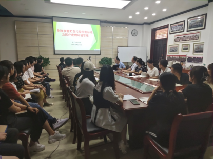会议开始,在董军带领下,全体参会人员集体学习了新《固废法》中关于危险废物贮存及其污染控制的标准,并进行深入讨论,特别是基于目前实验室情况,要求各科研实验室加强危险废物贮存的要求,包括固废的收集,存储及危险标签的张贴等等。对于自查以及学校在例行检查时,所指出的实验室安全隐患等,要积极整改落实,并形成闭环反馈机制。强调实验人员在开展实验时要严格按照新规执行,做到安全取用药物,稳妥储存固废。此外,会议还着重强调了药品登记问题,指出了存在的弊端,给出了相应的解决手段,并进一步规范了实验人员实验操作。