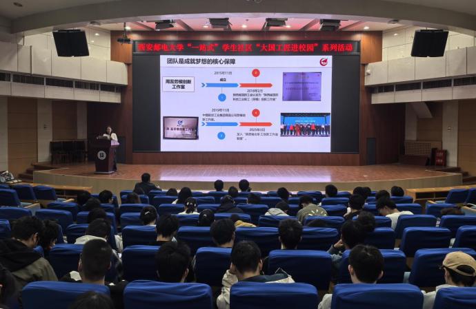 (通讯员江德强)10月16日下午,电子工程学院、集成电路学院在长安校区图书馆二楼国际会议中心开展“一站式”学生社区“大国工匠进校园”活动,邀请陕西省劳动模范、中国航空工业集团一级技术专家、制动复合材料事业部副总经理周蕊作专题报告,并为其颁发“一站式”学生社区成长导师聘书。学院青年教师和2025级新生代表300余人参加活动。学院党委副书记马素刚主持报告会。
